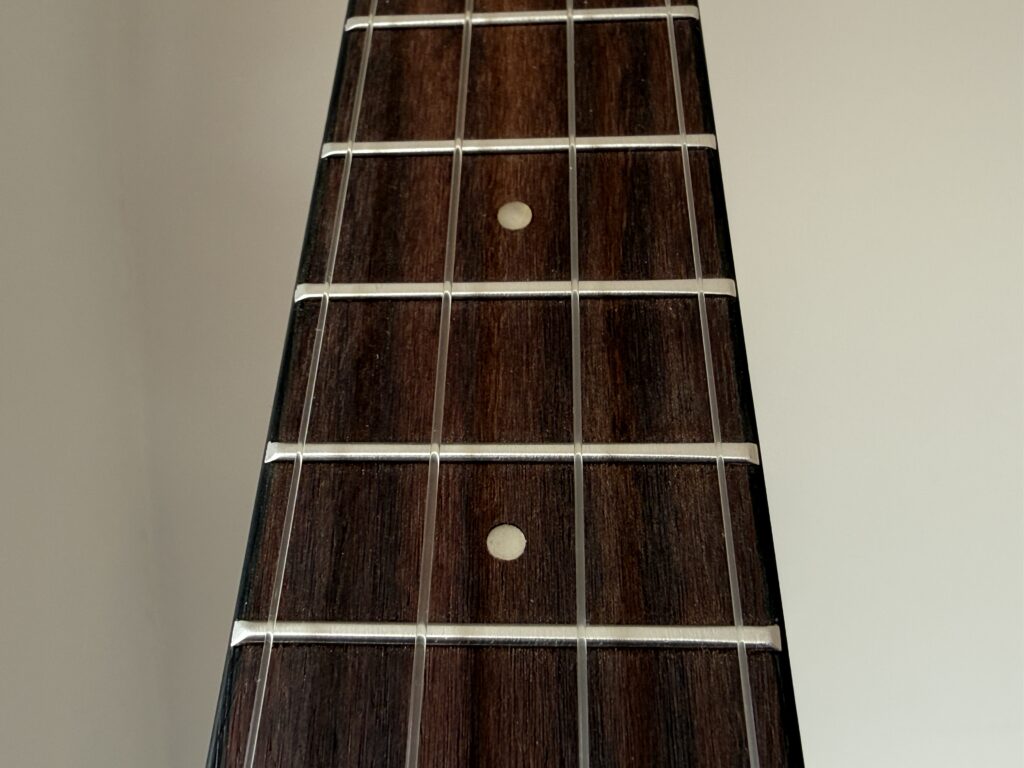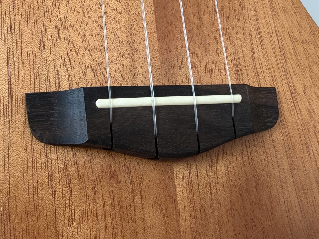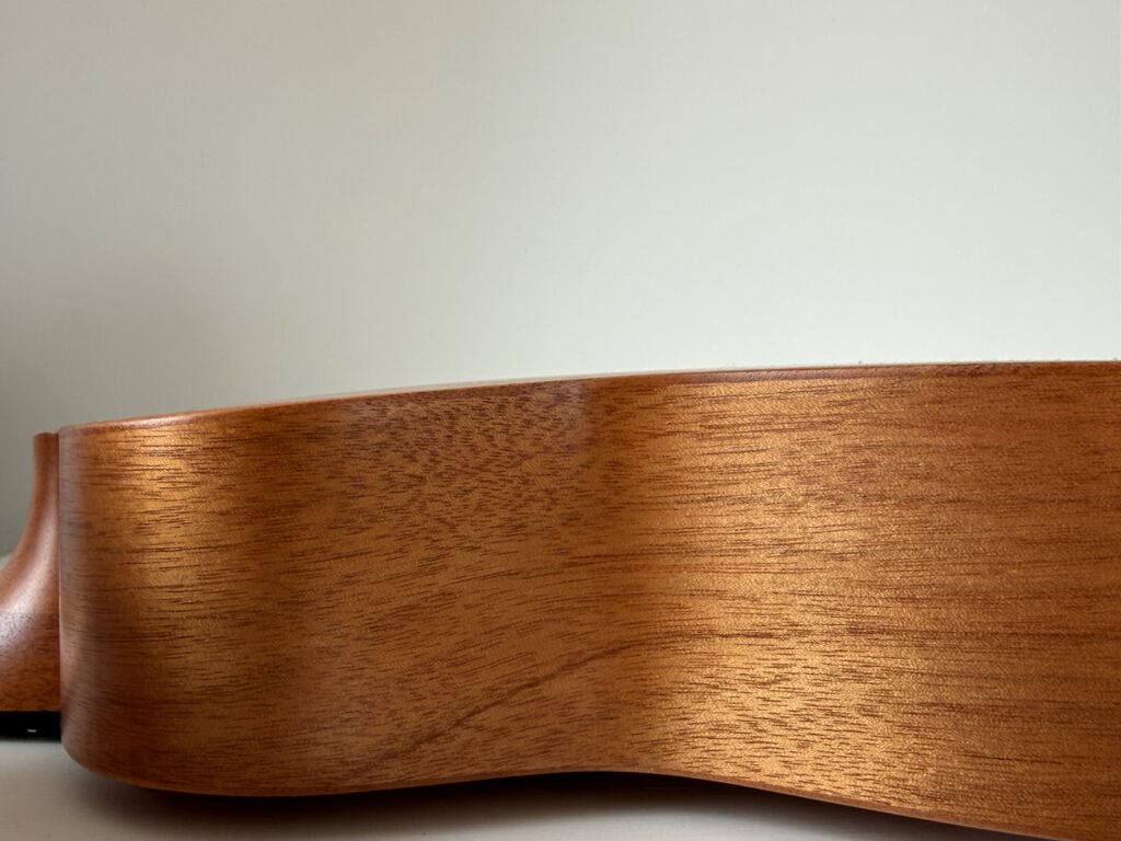 About appearance and wood … The Federmeier UK-300 ukulele looks really nice. The top, back and sides are made of solid mahogany – wood that boosts the low and middle tones, which is what is usually missing from a ukulele sound. Mahogany was also used for the neck. The fingerboard and bridge are rosewood. As I mentioned before, the size of the instrument is classified as concert. In its design, it has three more cool solutions. Convex back for improved sound, contoured bridge and great string mounting for better tuning.