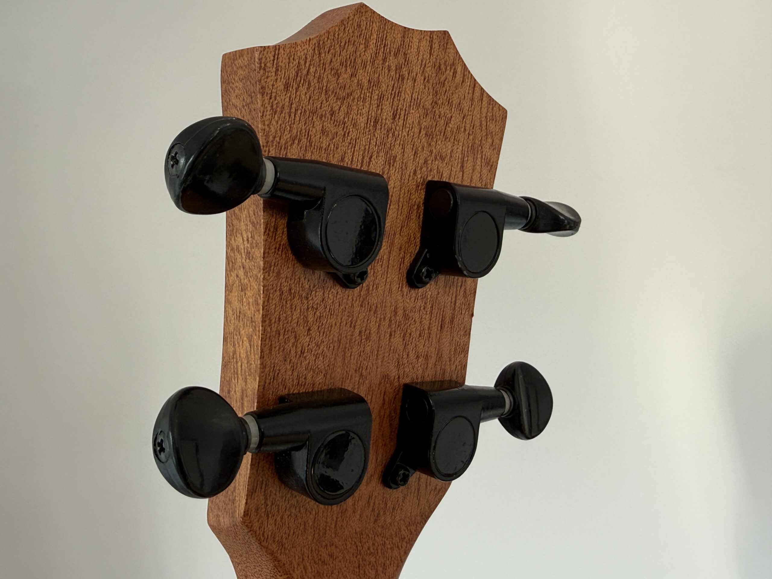The back of the body is convex, which gives more space in the box to resonate the sound.4 tuners are one of the best designs – closed oil. At the other end we have a belt clip
